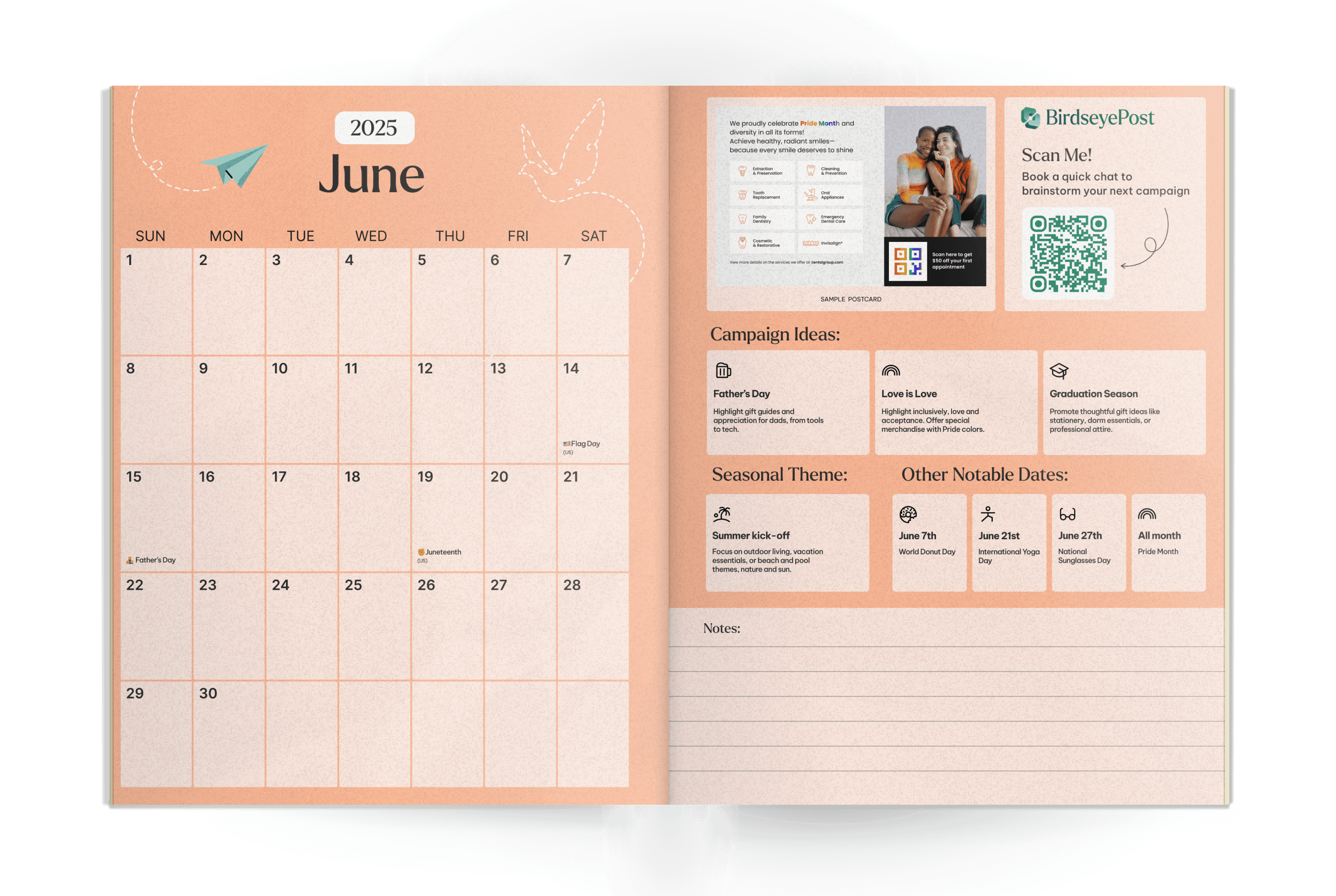 Created by the team behind BirdseyePost, this calendar reflects what works best in real-world campaigns — and when to send them for maximum impact.