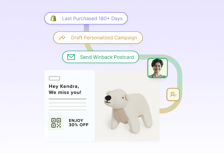SmartMailers turn your direct mail into a performance channel — fully automated and personalized using real-time events from Shopify and Klaviyo. Just like you’d set up an email flow, you can now trigger a physical postcard to send when someone browses a product, abandons a cart, places an order, or lapses as a customer.